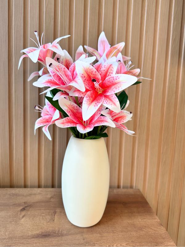 ARRANJO LIRIO ARTIFICIAL VASO CERAMICA GRANDE BEGE
