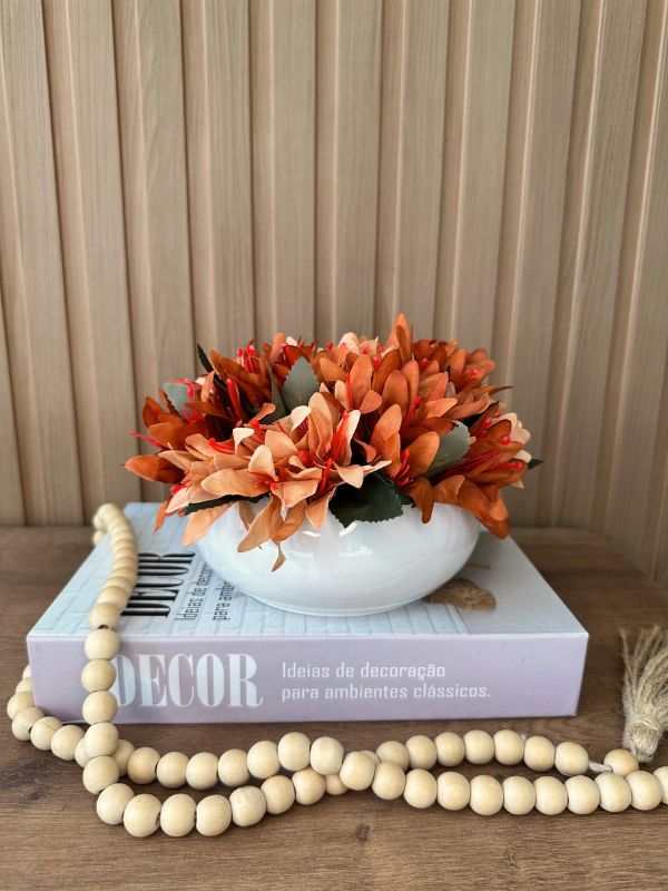 MINI LIRIOS ARTIFICAIS LARANJA VASO CERAMICA BRANCO