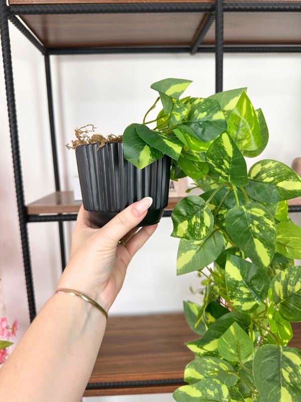 PENDENTE ARTIFICIAL JIBOIA VERDE/CREME 100CM VASO PRETO
