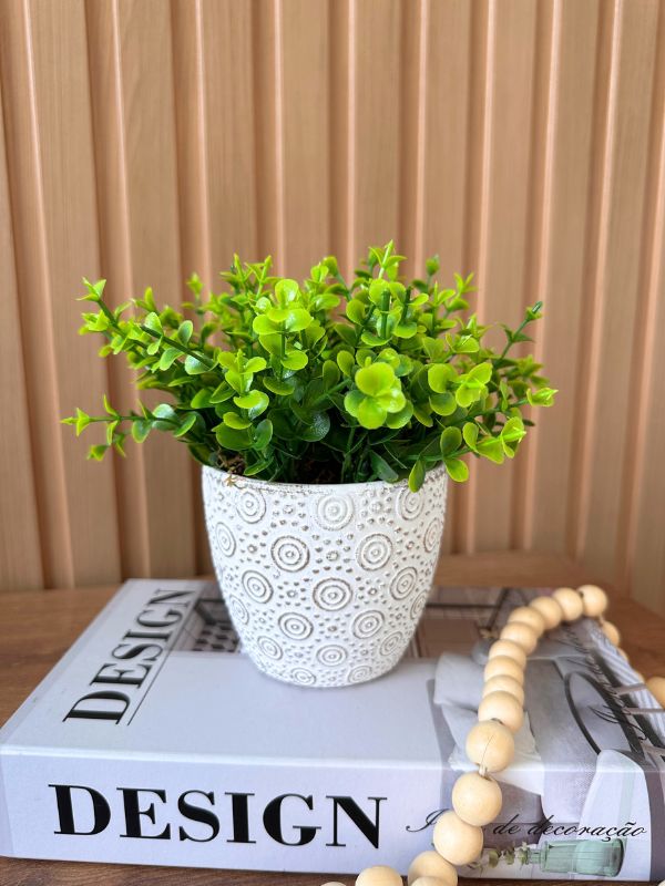 ARRANJO ARTIFICIAL EUCALIPTO VASO BRANCO CIMENTO