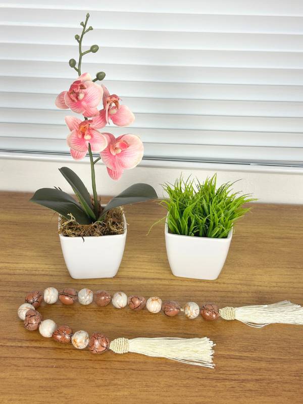 KIT DECORATIVO ORQUDEA + COLAR + VASO VERDINHOS