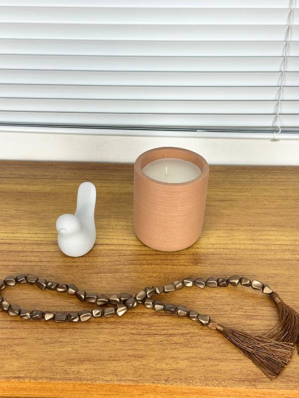 KIT DECORATIVO VELA + COLAR + PASSARO CERAMICA